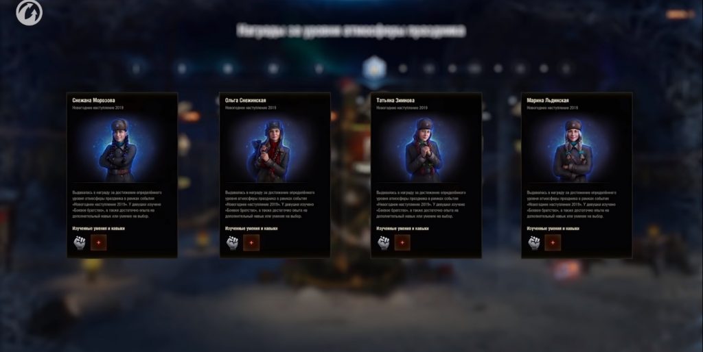 In your hangar you can decorate a Christmas tree, a snow sculpture, a camp kitchen and, in fact, the courtyard itself. Everything is as before: do battle missions, earn jewelry and hang them. Each decoration enhances the festive atmosphere of the hangar. The more rare the decoration, the more they give the atmosphere points.