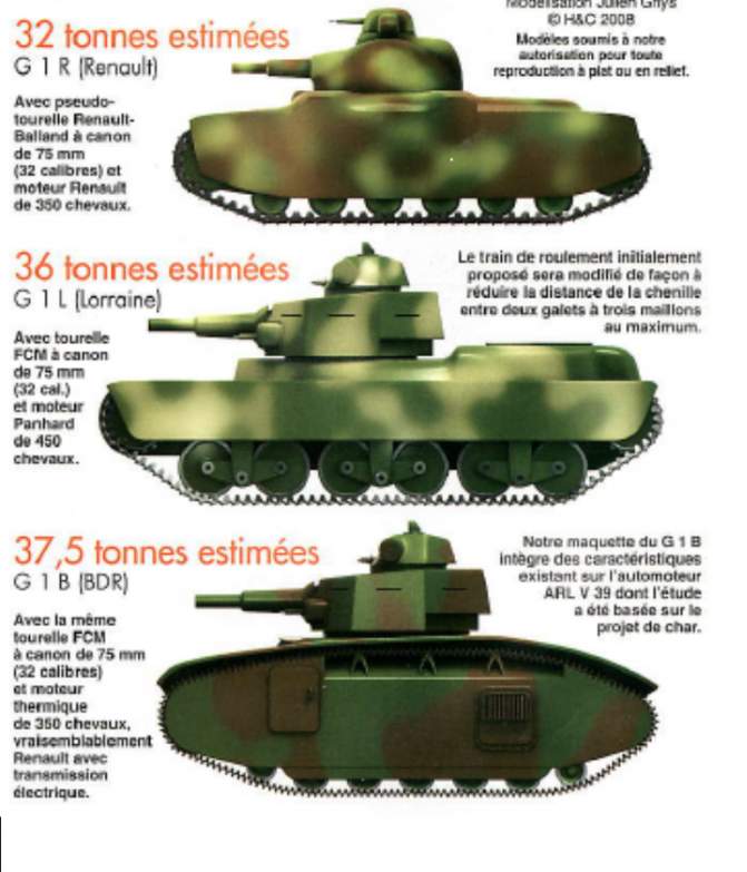 - Stéphane Ferrard, 2008, “Le Futur Char G1, 2e partie 1938-1940 (1): 35 tonnes maximum pour un 75 en tourelle”, Histoire de Guerre, Blindés & Matériel, N° 81, pp. 48–55