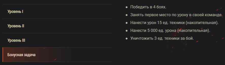 After completing three common tasks, a bonus task opens with even more valuable rewards. For each task, you can get one award from the list.