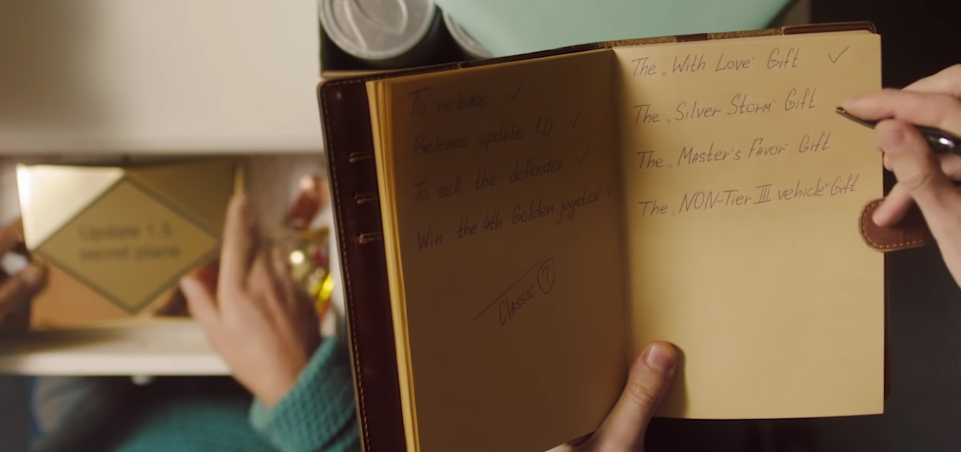 Anche sul tavolo di Makarow al minuto 1:29 puoi vedere tre cartelle: “Nuove mappe, progetto n. 20032018”, “Nuovi carri armati” e “Nuova speranza”. “Nuovi carri armati” “Progetto n. 0.7.1_28.12.2011 “- nella patch 0.7.1 è apparsa una linea di carri armati francesi (un riferimento al fatto che presto verrà visualizzata una nuova linea di veicoli francesi a ruote?)
