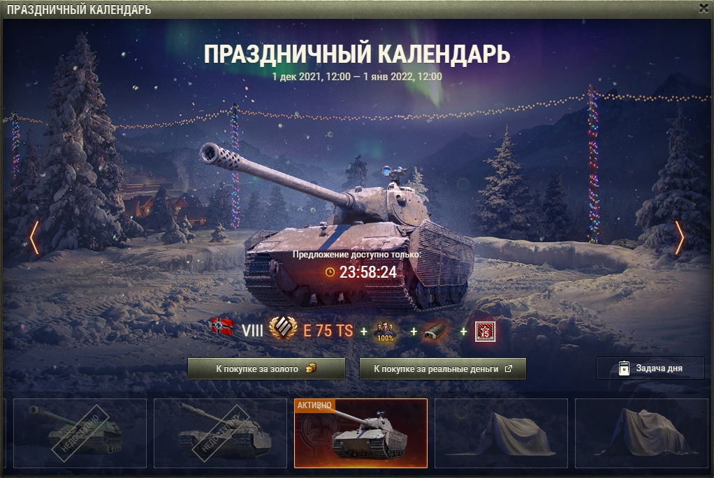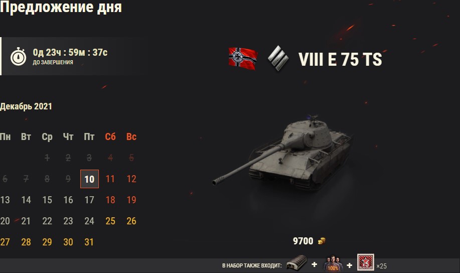 The German heavy tank E 75 TS is on the calendar today. Players can buy the vehicle directly in the game for 9,700 gold.