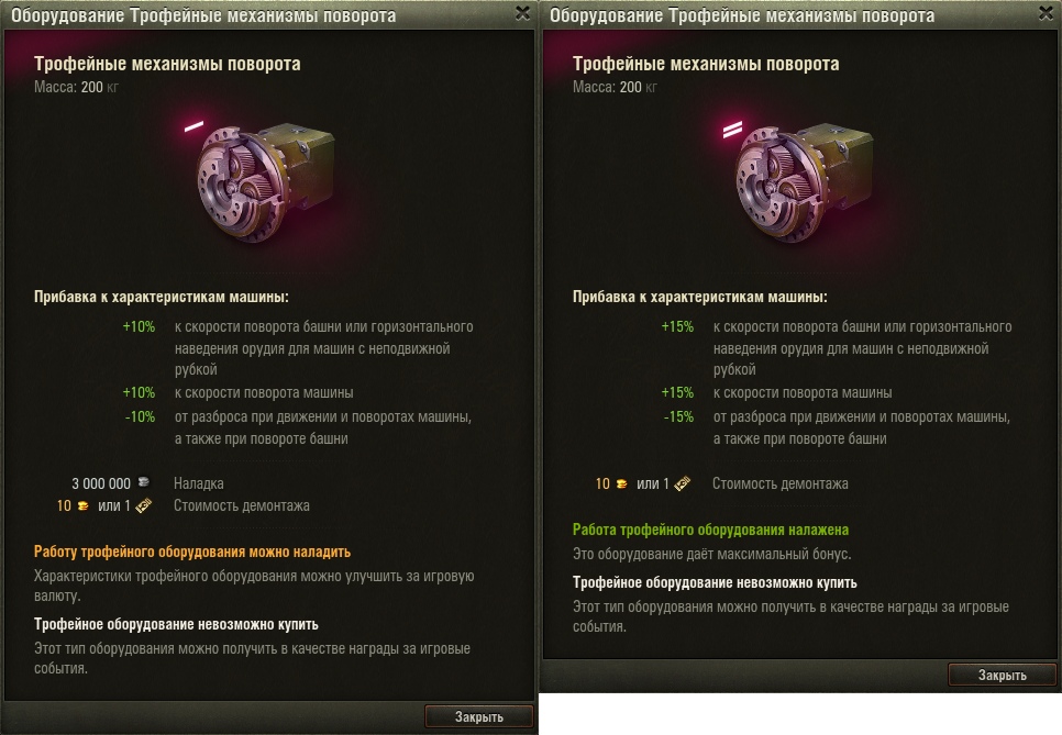 • + 10 / + 15 * to the speed of turret traverse or horizontal guidance of the gun for vehicles with a fixed wheelhouse