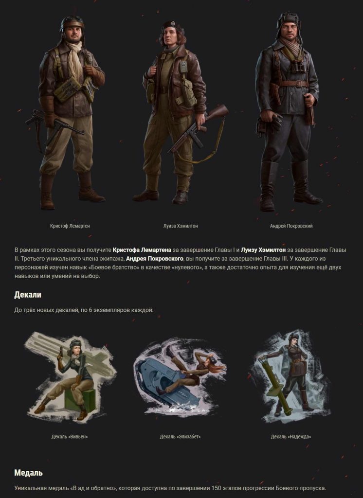 As part of this season, you will receive Christophe Lemarten for completing Chapter I and Louise Hamilton for completing Chapter II. The third unique crew member, Andrey Pokrovsky, is awarded for completing Chapter III. Each of the characters has learned the “Combat Brotherhood” skill as “zero”, as well as enough experience to learn two more skills or abilities to choose from.