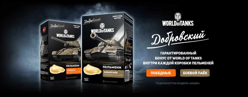Il pacchetto stesso è progettato per WoT e ci sono 2 gusti: “Combattimento” e “Vittoria”. Purtroppo, la differenza è solo nel design, il gusto è lo stesso: manzo + maiale.