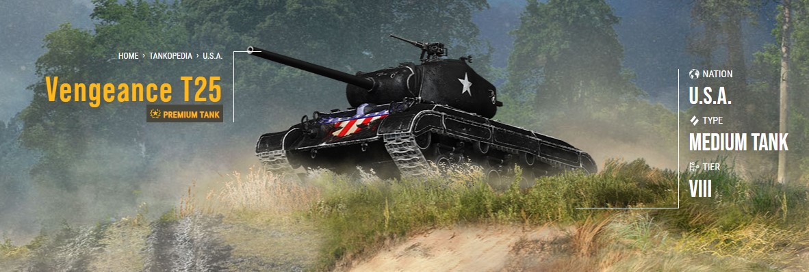 At the end of Freedom Fighter, players will be able to choose between the American Tier VIII T26E4 Freedom Medium Tank or the American Tier VIII Vengeance T25 Medium Tank as final reward.