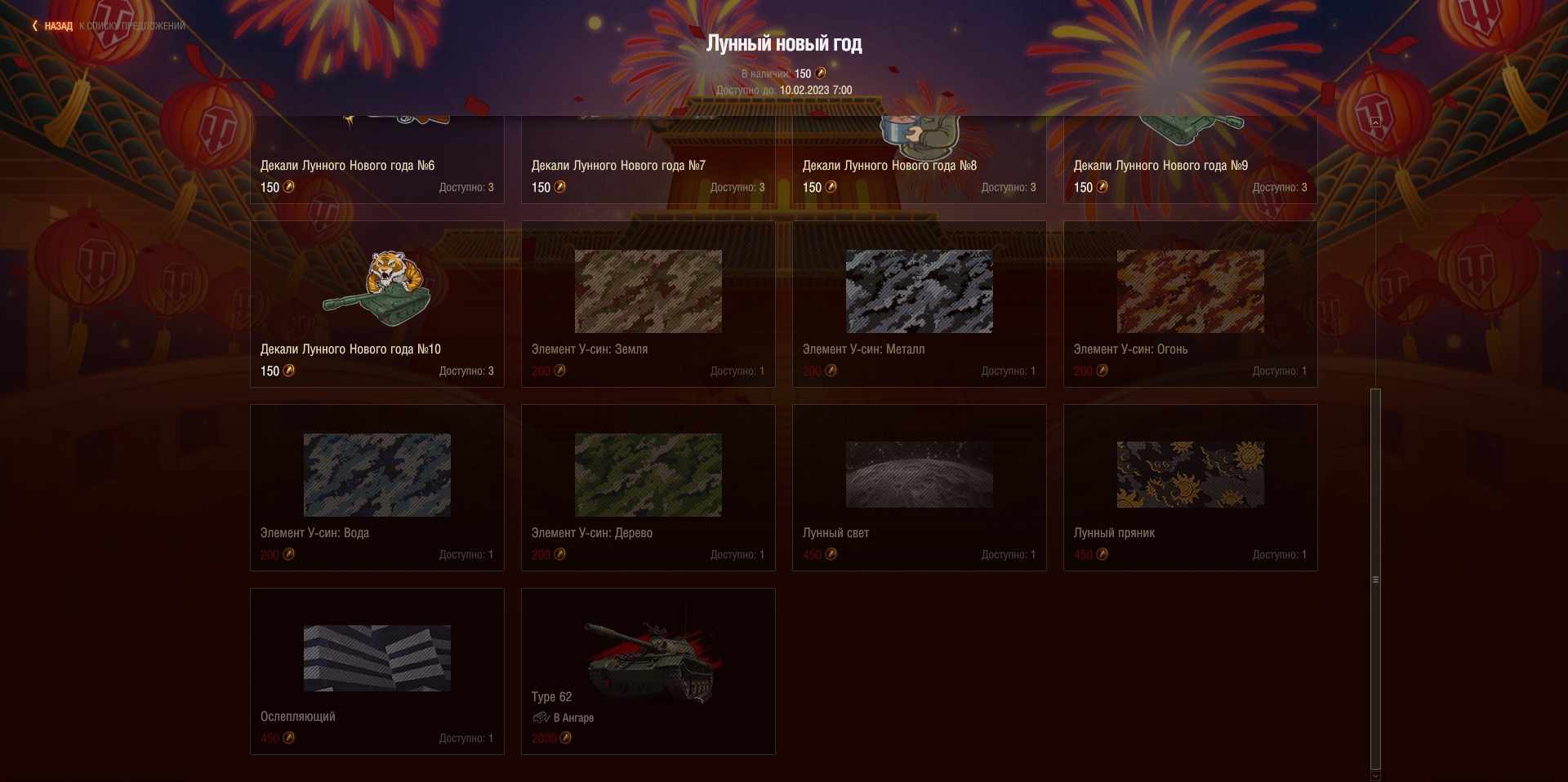 * Exchange Lunar Seals for rewards in the Warehouse section → Supplies from the Home Front tab → Eastern New Year, which will be available until February 10, 07:00 (Kyiv). The section will be available if you have at least 1 Lunar Seal.