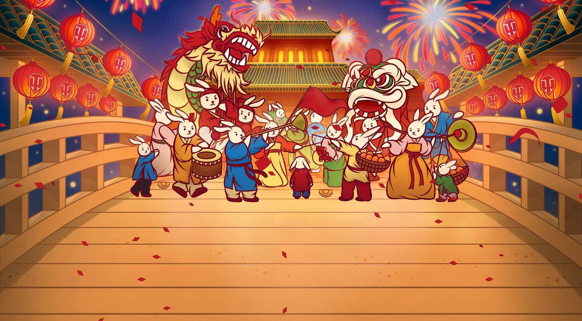 May the Year of the Rabbit bring you happiness and good luck in World of Tanks! The new mascot has long ears. Rabbit heard your requests for replenishment of stocks, and now a lot of valuable has appeared in the Warehouse. Earn Lunar Seals by completing special tasks and exchange them for prizesin the section “Warehouse” → tab “Deliveries from the rear” → “Eastern New Year”. During the celebration of the Eastern New Year, your Hangar will also be transformed: it will turn into a dynamic Chinese metropolis.