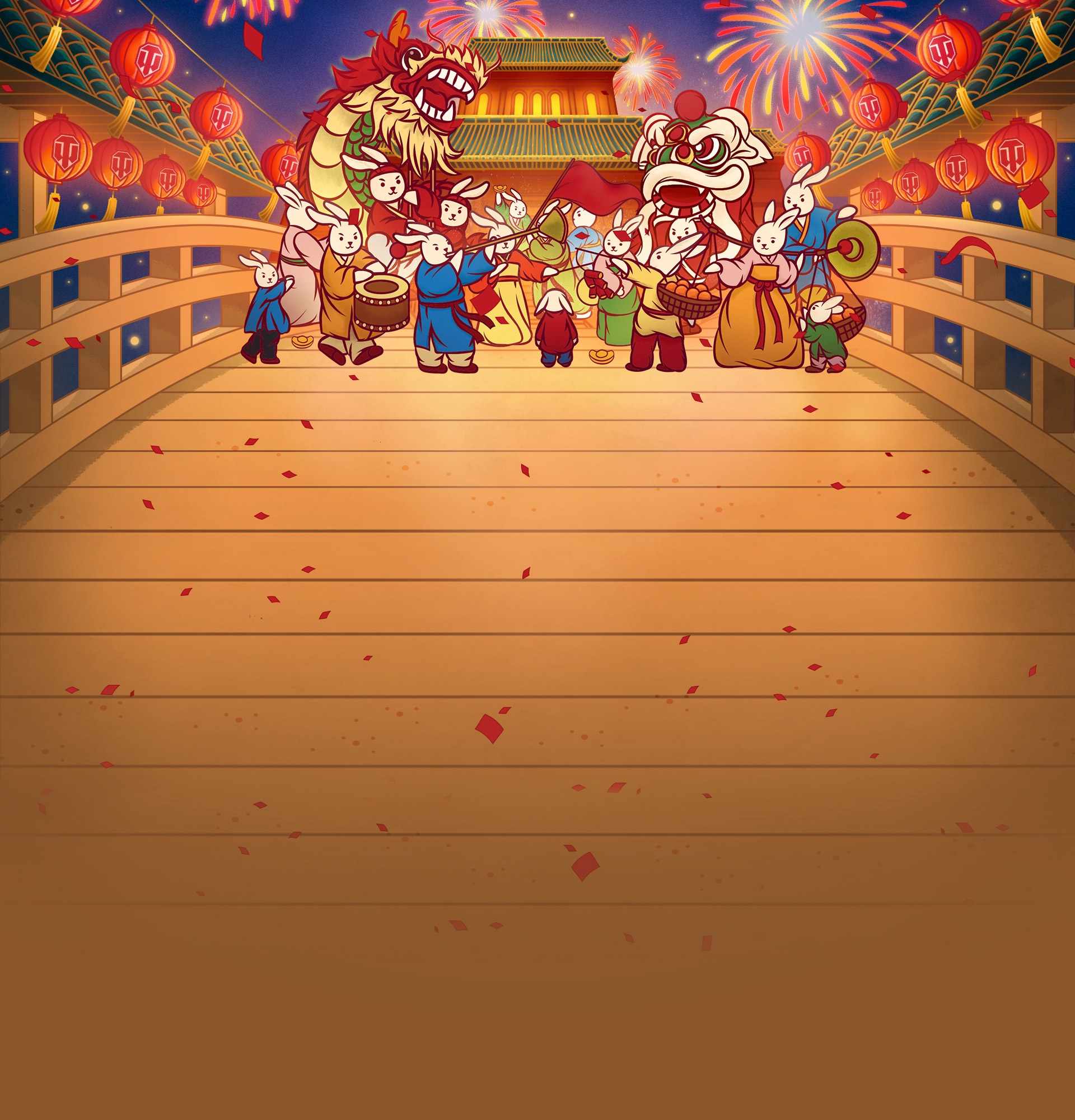 Possa l’Anno del Coniglio portarti felicità e buona fortuna in World of Tanks! La nuova mascotte ha le orecchie lunghe. Coniglio ha ascoltato le tue richieste di ricostituzione delle scorte e ora sono apparse molte cose preziose nel Magazzino. Guadagna Lunar Seals completando incarichi speciali e scambiali con premi nella sezione “Magazzino” → scheda “Consegne dalla retroguardia” → “Capodanno orientale”. Durante la celebrazione del capodanno orientale, il tuo Hangar anche trasformarsi: si trasformerà in una dinamica metropoli cinese.