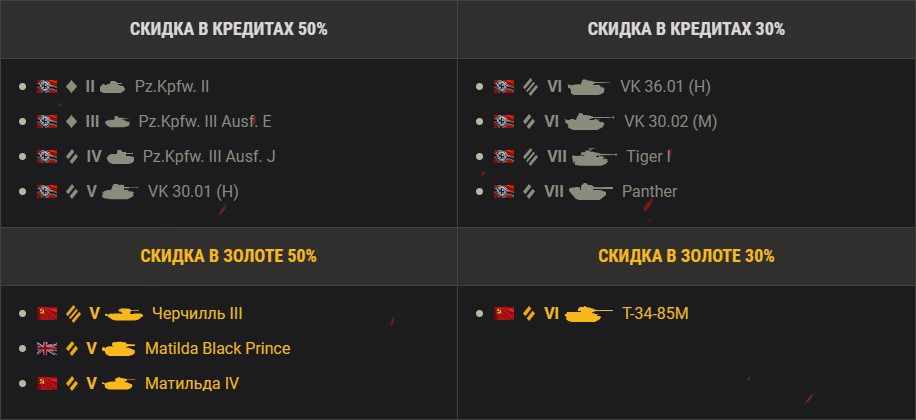 Accelerate your research progress towards these two predatory cats with 50% discounts in credits on selected tanks, and add four classic British and Soviet vehicles to your collection of armored vehicles and save up to 50% gold.