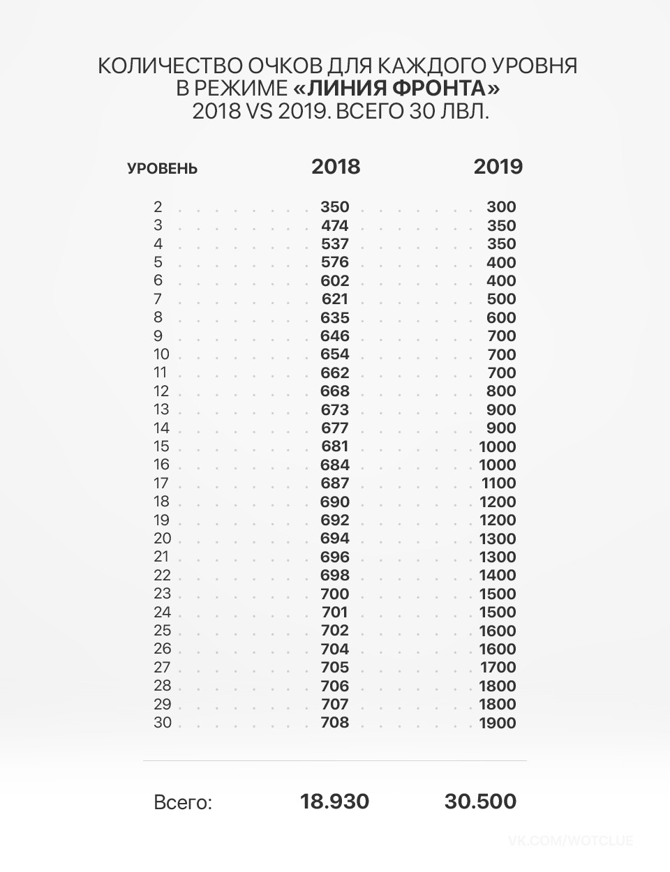 WoT Express has prepared a list of points needed to reach the 30th level in the front line. They compared it with last year and it looks like you have to hit 11,570 more points to gain prestige.
