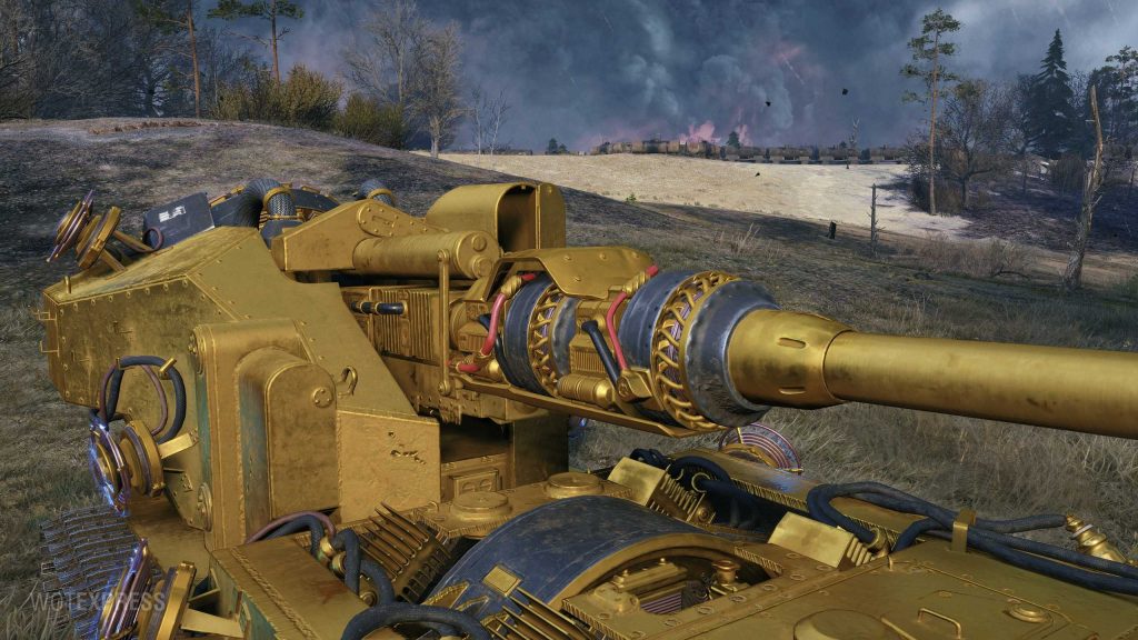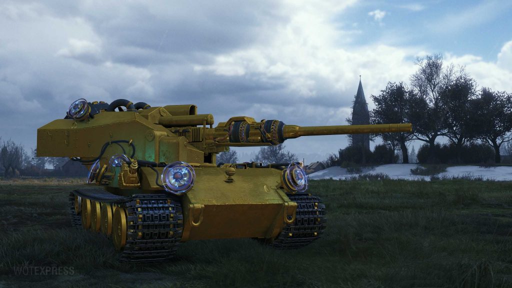 3rd special boss (the rarest tank in the game, the chance of meeting this boss is 0.0001%): Waffenträger auf E 380 Gold from the fields of the fan-mode “The Last Waffentrager” 2020.