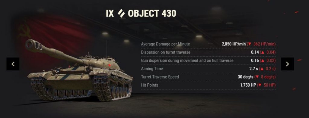 brutta batosta per i due Object 430 pesantemente depotenziati. La festa è finita, depotenziati in tutto, danno, dispersione, tempo di mira, brandeggio torretta e addirittura punti vita ridotti per Obj 430. Divertitevi!