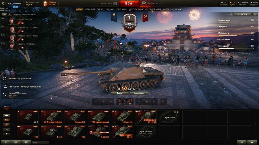 This hangar is the first exclusive after the re-release of WOT in China. This hangar will be available ONLY there. The hangar itself is night (evening), made in the Chinese setting, and you and the audience in the hangar have a view of Tiananmen Square (reconstruction), which is located in Beijing.