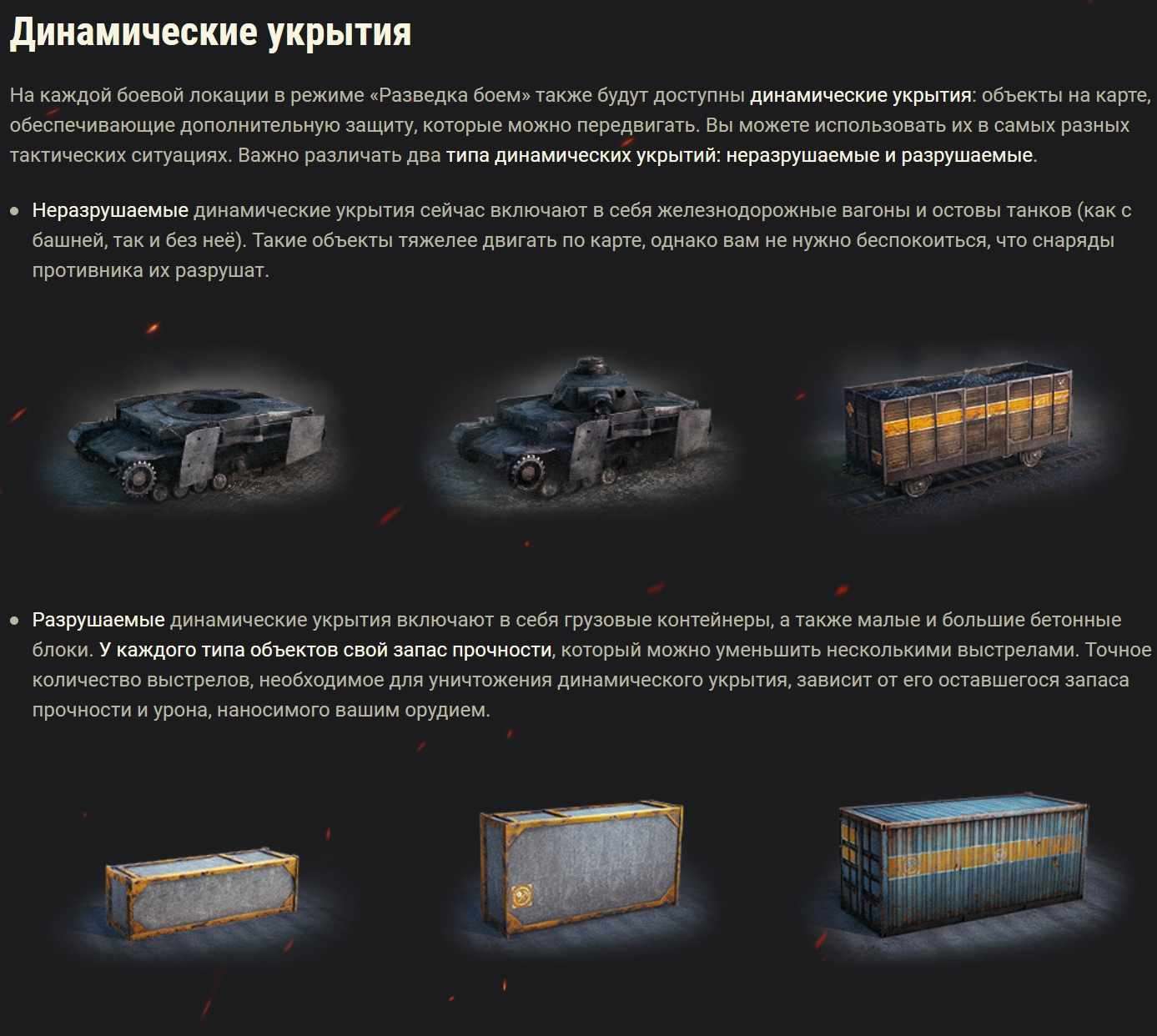 • Indestructible dynamic shelters now include railcars and tank wrecks (both with and without turrets). Such objects are harder to move around the map, but you don’t have to worry about enemy projectiles destroying them.