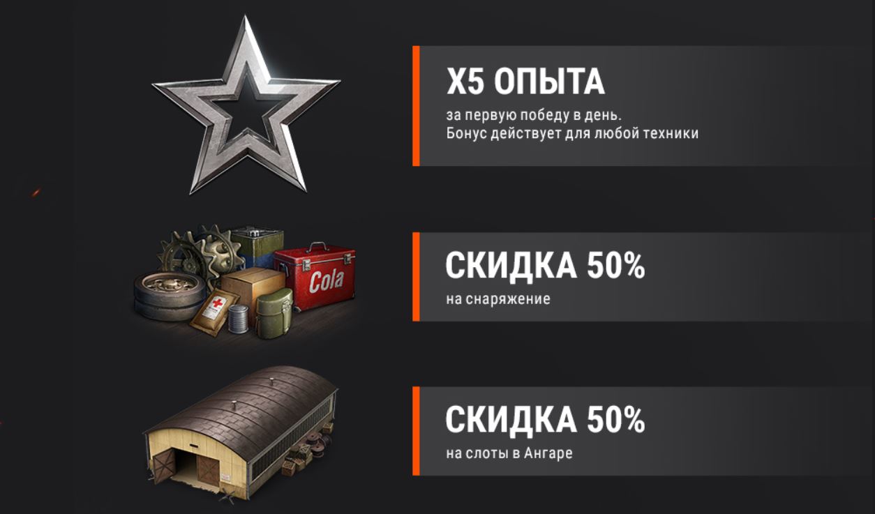 – 5 times more experience for the first victory of the day on any vehicle.