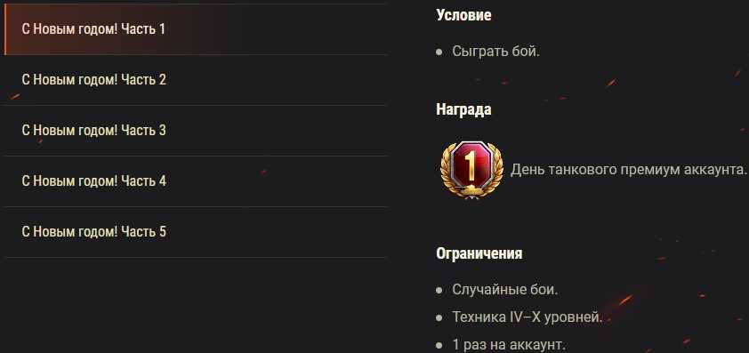 “Happy New Year!” Promotion: x5, discounts, 1 day of premium and combat missions.