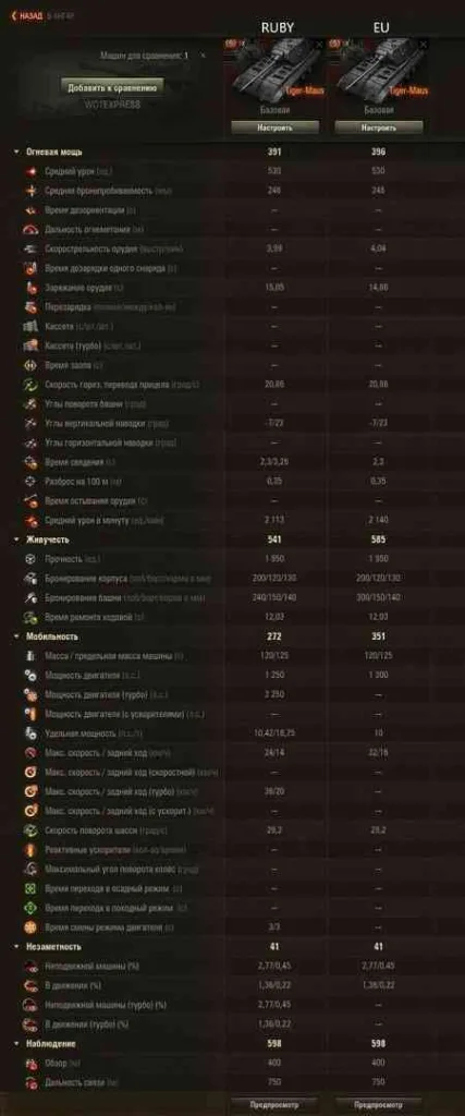 Comparison of the characteristics of the EU Pz.Kpfw. Tiger-Maus 120t and RU Pz.Kpfw. Tiger-Maus 120t: