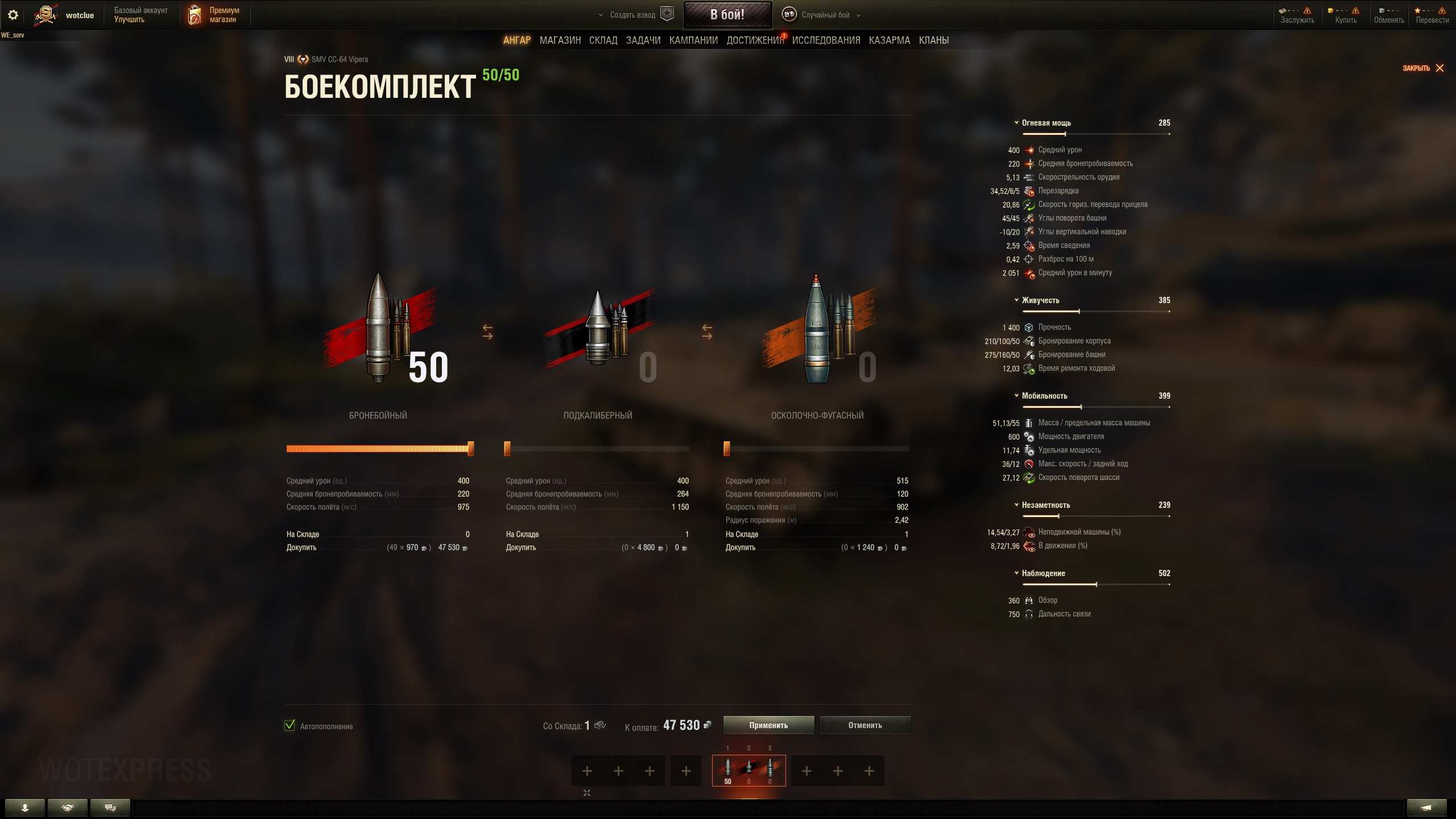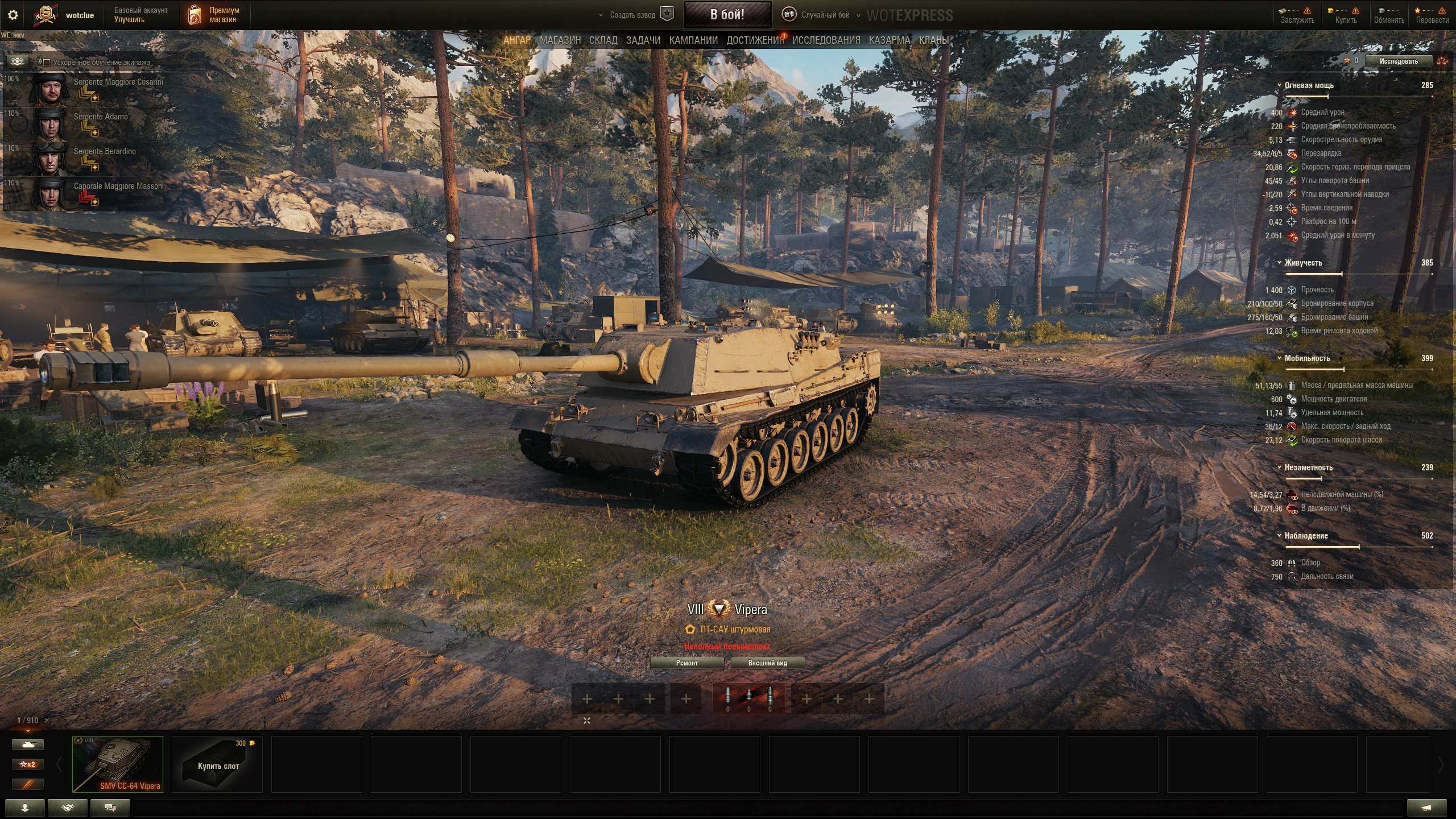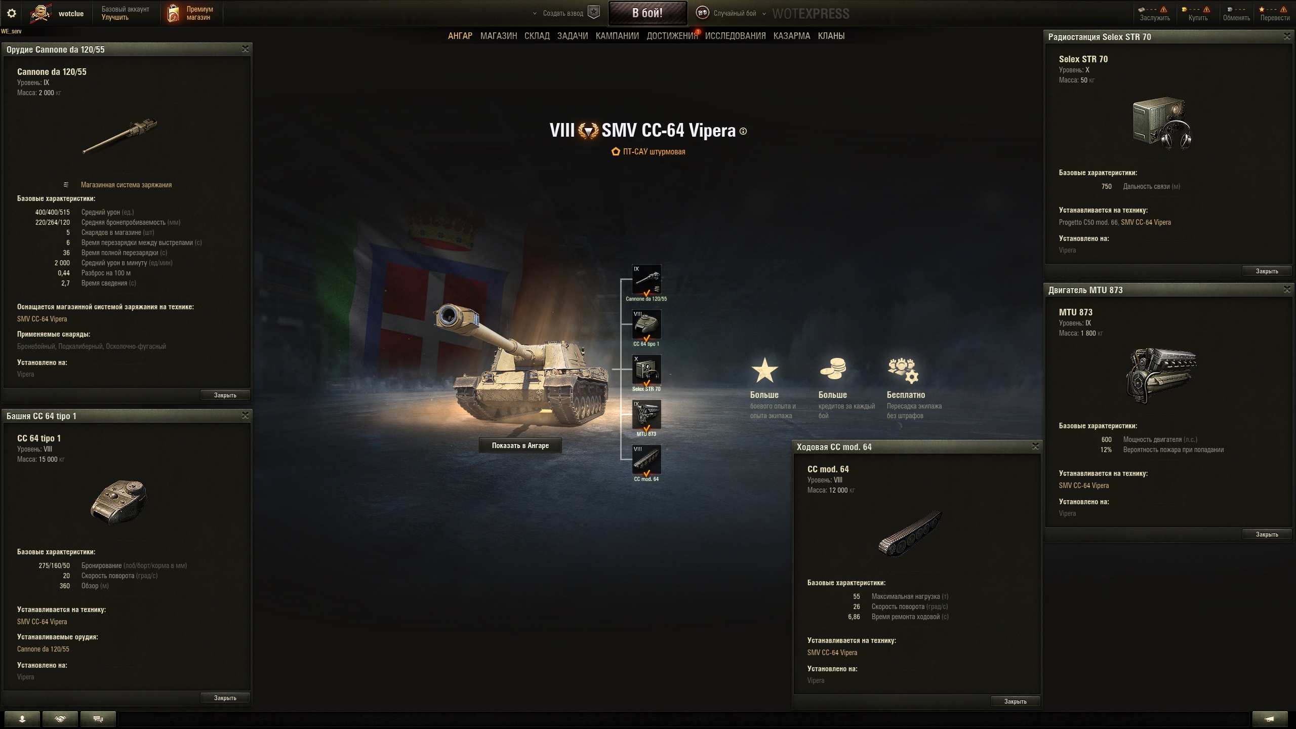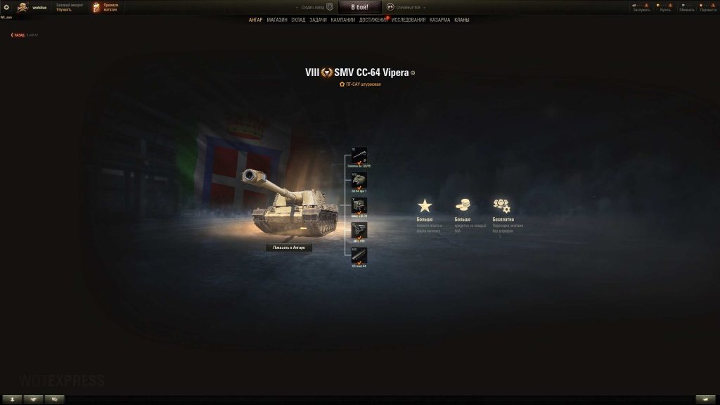 SMV CC-64 Vipera (Italia, TD-8, premium) è andato questo pomeriggio al supertest, ancora WOT RU. Nome corto: Vipera.