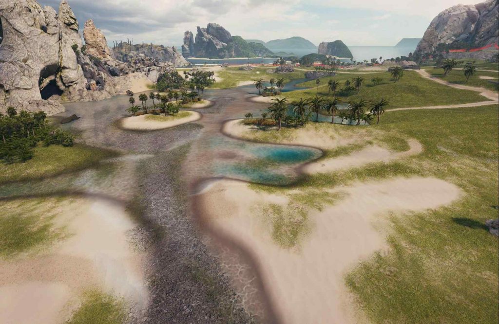 – La principale zona di collisione per i carri armati è sulla costa, sotto la catena montuosa centrale. Diversi punti di ancoraggio e la possibilità di guidare sul sito di collisione principale rendono il gioco a questo punto molto intenso.