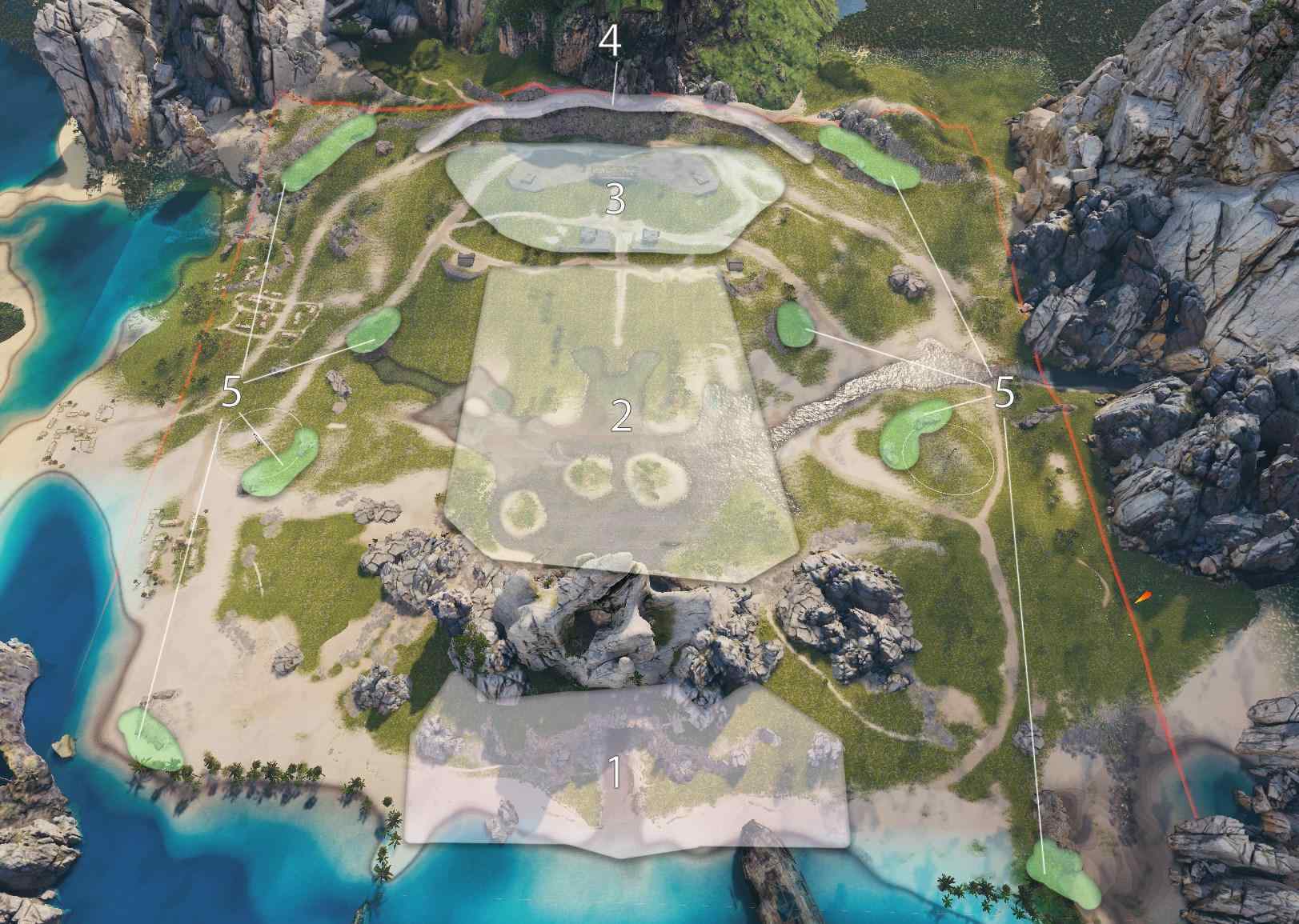 – Altopiani con vegetazione e rifugi, da cui ci sono buoni colpi nella zona 1.