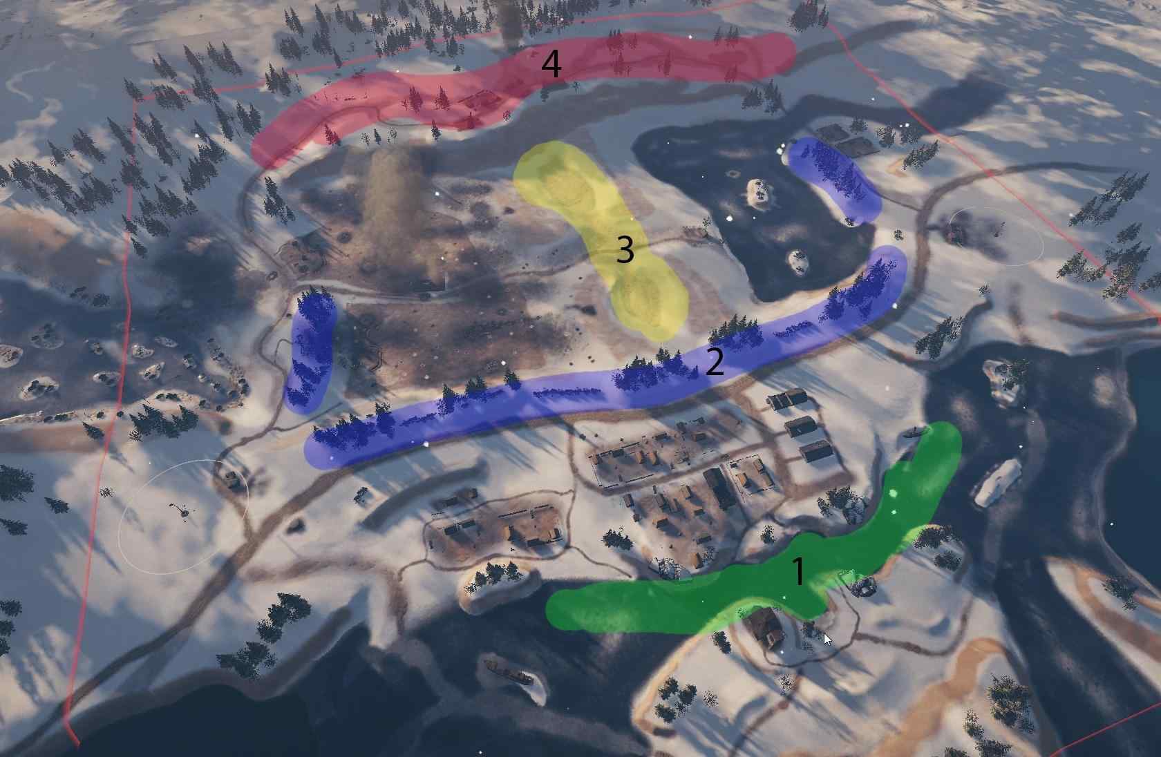 – Colline quasi prive di copertura e vegetazione per veicoli manovrabili e gioco a distanza. La squadra che controlla questa direzione ottiene l’accesso agli Altopiani 3.