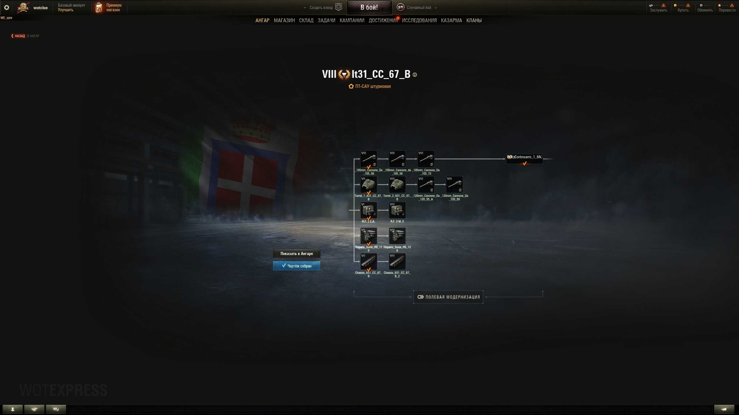 SMV CC-67 – lvl 8 TD Controcarro mod. 67 (Italy, TD-8, drum for 3 or 5 shells, regular) entered the WOT supertest on Thursday afternoon. Short name: CC-1 Mk. 2. This Italian has as many as 5 guns to choose from.