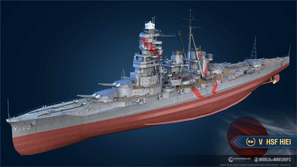 La V HSF Hiei è una veloce corazzata armata con otto cannoni da 356 mm in grado di sparare danni decenti inflitti con proiettili HE e AP. La nave ha anche una grande riserva di HP e un enorme raggio di tiro per il suo livello, a scapito di una bassa precisione e di un’elevata rilevabilità.