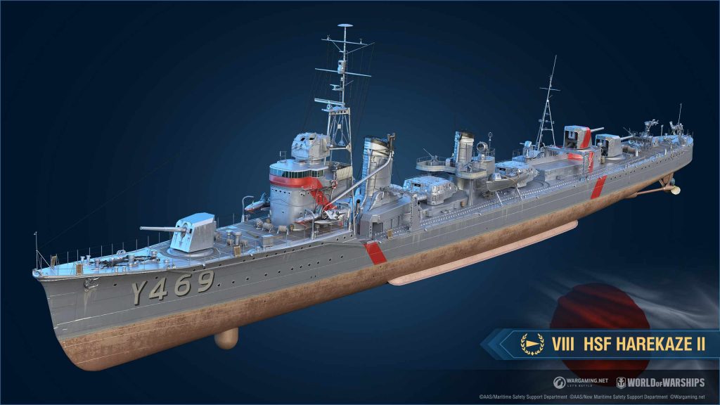 VIII HSF Harekaze II è un cacciatorpediniere giapponese armato con cannoni da 150 mm – uno spettacolo insolito per questa classe – che può sparare proiettili HE e AP ad alto danno. La nave era inoltre equipaggiata con il consumabile Ricerca idroacustica. A causa della bassa rilevabilità e dell’elevato danno ai siluri, il gioco di questa nave si basa principalmente su attacchi con siluri furtivi.