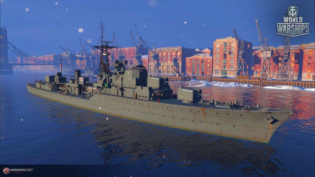 AA defense – 3х1 40 mm, range – 3.5 km, damage per second – 261. 2х2 40 mm, range – 3,5 km, damage per second – 38. 3х2 114 mm, range – 5.0 km, damage per second – 45.